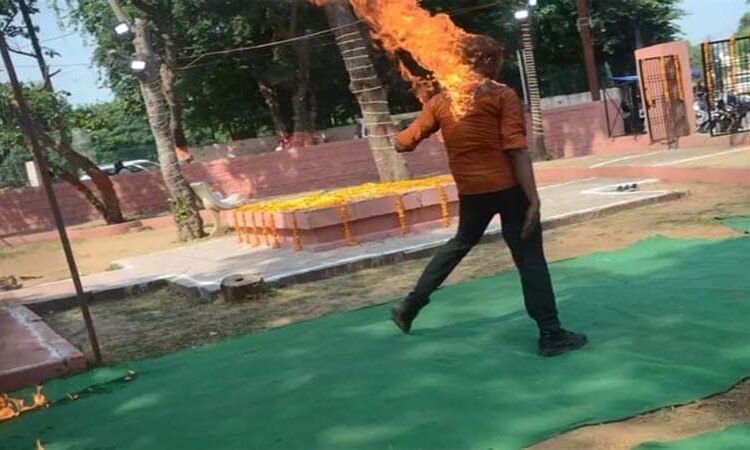 दरअसल गुरुवार सुबह बालभवन के सामने कैप्टन रूपसिंह की प्रतिमा पर कार्यक्रम चल रहा था। जब महापौर शोभा सिकरवार का उद्बोधन चल रहा था, तभी युवक यहां पहुंचा। उसने पेट्रोल से भरी बोतल खोली। इसके बाद अपने ऊपर पेट्रोल डालकर आग लगा ली। जैसे ही लोगों ने उसे देखा तो उसे बचाने के लिए दौड़े। मैट से आग बुझाई, लेकिन तब तक वह गंभीर रूप से जल चुका था। उसके कपड़े जल गए और आग शरीर तक पहुंच गई। उसे एंबुलेंस से अस्पताल भिजवाया गया। सीएसपी रत्नेश सिंह तोमर ने बताया कि प्रारंभिक पड़ताल में आग लगाने की वजह वेतन न मिलने से नाराजगी है।