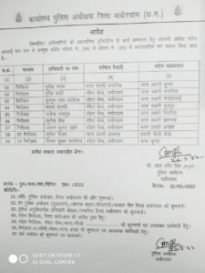 कबीरधाम। जिले के पुलिस विभाग में बड़ा फेरबदल किया गया है। एसपी डॉक्टर लाल महेंद्र सिंह ने साथ निरीक्षक और दो उप निरीक्षकों का तबादला किया है।