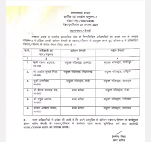 उत्तराखंड। उत्तराखंड की सीएम पुष्कर सिंह धामी सरकार ने एक बार फिर आईएएस अधिकारियों का तबादला किया है. उत्तराखंड सरकार ने मंगलवार (27 अगस्त) को प्रशासनिक फेरबदल करते हुए छह आईएएस अधिकारियों के तबादले किए हैं. तो वहीं वेटिंग में बैठे तीन आईएएस अधिकारियों को भी नई जिम्मेदारी दी गई है। धामी सरकरा ने उत्तराखंड के अल्मोड़ा, पिथौरागढ़ और पौड़ी के संयुक्त मजिस्ट्रेट को बदल दिया है।