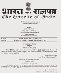 WAQF AMENDMENT ACT 2025 : वक्फ संशोधन अधिनियम, 2025 आधिकारिक तौर पर भारत में लागू, केंद्र सरकार ने जारी किया गजट नोटिफिकेशन
