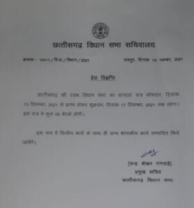 विधानसभा का शीतकालीन सत्र 13 दिसंबर से शुरू