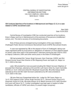 CGPSC RECRUITMENT SCAM : CBI raids in Raipur-Mahasamund, objectionable documents recovered, see press release ..